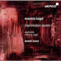 “Improvisation Ajoutée, Works for Organ.” Mauricio KAGEL: Improvisation ajoutée (1962); Rrrrrrr… (1980/81); General Bass (1972); Phantasie (1967). Dominik SUSTECK: K-A-G-E-L (2012). Dominik Susteck (org), Tobias Hagedorn, Boris Heinrich (assistants). Wergo WER 7345 2 (1 CD) (www.wergo.de). I don’t think I can adequately explain how Kagel works his magic. In his theatrical pieces, he tweaks concert music’s standard expectations. Kagel’s musicians are actors who happen to create music. His performers may be tasked with non-traditional actions like speaking or looking at the audience in a particular way, and of course, playing music which may be unexpected, humorous, or resolutely mundane. Improvisation ajoutée raises a ruckus. An organist’s assistants are usually inobtrusive, but here they shout and laugh, and are anything but invisible. The music itself is precisely scored. It may sound chaotic, but this is due to the music’s density and the assistants’ continual activity. The work asks performers and listeners to reconsider (or confirm) how organ music is played and heard. The king of instruments, the sacred standby, was late to post-war developments in contemporary music. At its 1962 premiere, Improvisation upset those who expected organ music to be sacrosanct and not profane. Imagine a soundtrack for the activity at the edges of a Bosch panel. Rrrrrrr… are eight amusements and parodies from a larger collection whose titles all begin with the letter “r.” With titles like “Raga,” “Ragtime-Waltz,” and “Ripieno,” these are ostensibly straightforward miniatures, though Kagel plays with our expectations, e.g.: “Raga” proffers Oriental gibberish. “Rossignols enrhumés” introduces us to a sick bird, rasping in the lowest register possible. The Phantasie requires a tape reflecting the organist’s daily life up until the moment the work is played (ablutions, making breakfast, commuting, a church service, etc.). General Bass is a sedate, low-toned meditation at odds with its title. Susteck’s five improvisations complement Kagel. As Kagel critiqued tradition from within, so continues Susteck who explores his instrument’s astonishing versatility (the Organ Kunst-Station Sankt Peter, Cologne) enhancing sounds encountered in the Kagel with an insider’s flair.